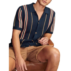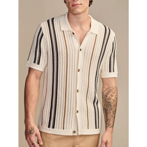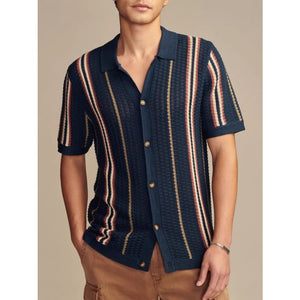 Men's Plus Size Striped Collared Neck Short Sleeve Shirt