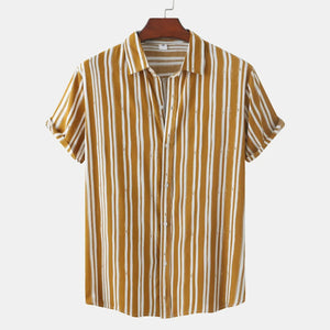 Men's Plus Size Striped Short Sleeve Button-Down Shirt