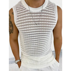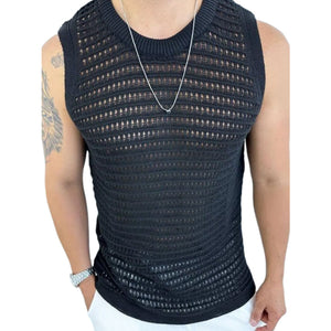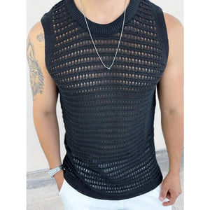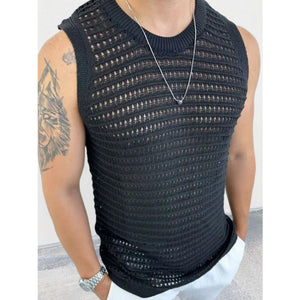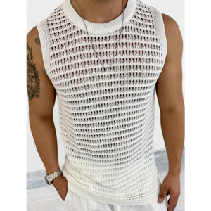 Men's Round Neck Hollow Out Sleeveless Knit Top