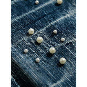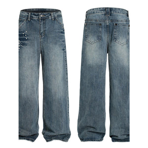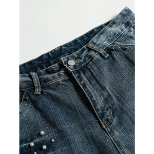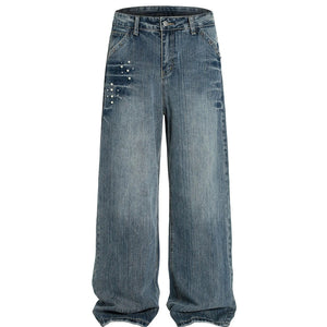 Men's Vintage Wide Leg Pearl Detail Jeans