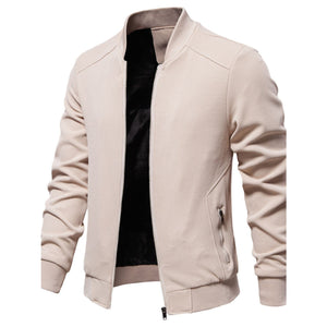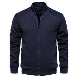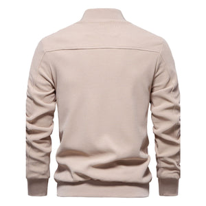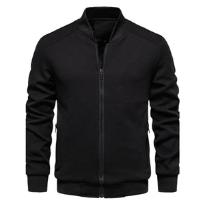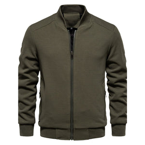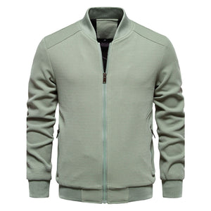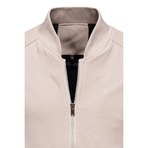 Men's Waffle Knit Baseball Collar Zip Up Jacket