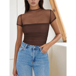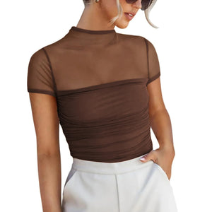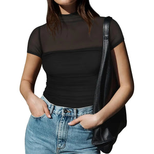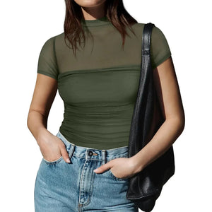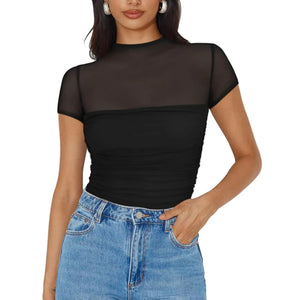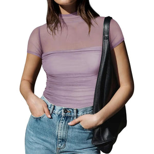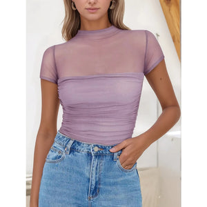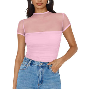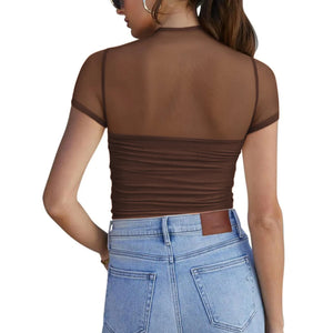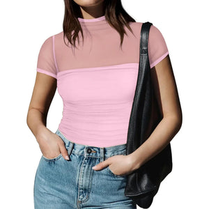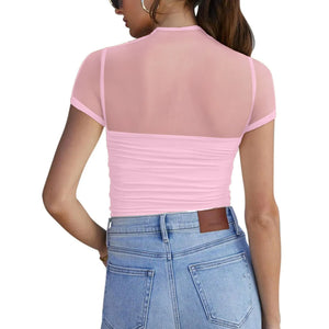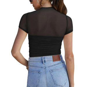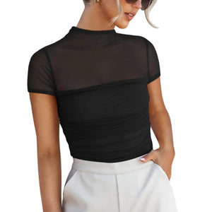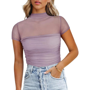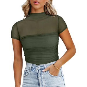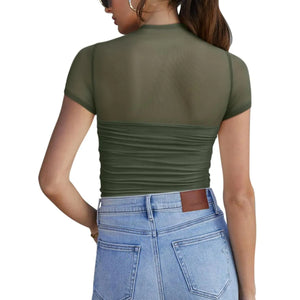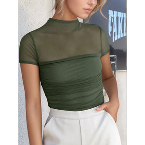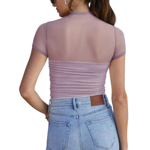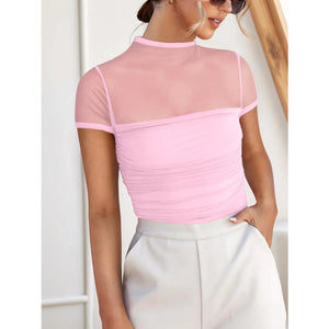 Mesh Mock Neck Short Sleeve T-Shirt