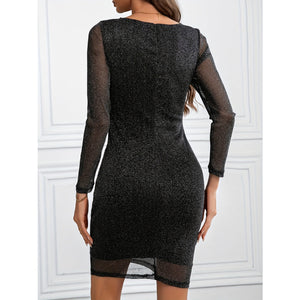 Metallic Ruffled V-Neck Long Sleeve Mini Dress