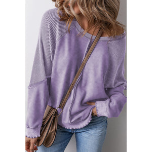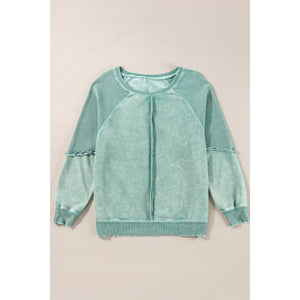 Mineral Blue Solid Waffle Knit Patchwork Raglan Sleeve Sweatshirt