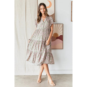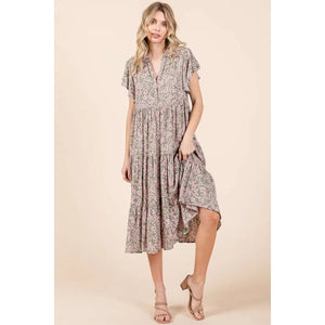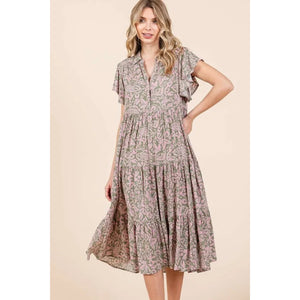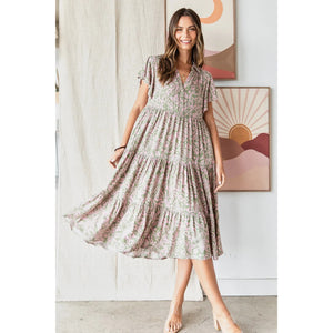 This midi dress showcases an abstract print design with ruffle tier accents for a chic and stylish look. Perfect for a summer outing or special occasion, the dress offers a fun and playful vibe. The midi length adds an elegant touch to the flowy silhouette. Stand out in this trendy abstract print midi dress with ruffle details!