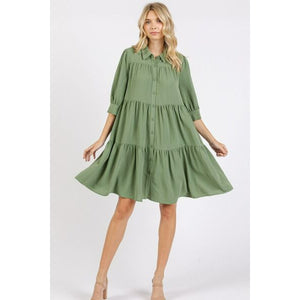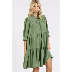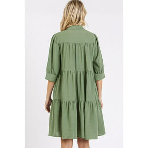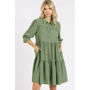 Mittoshop Button Detail Collared Neck Tiered Shirt Dress