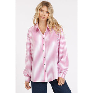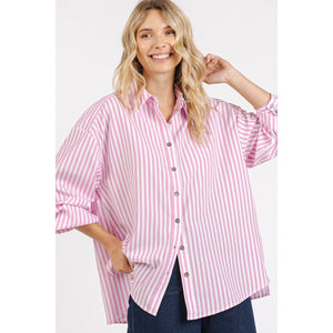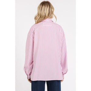 The Button Down Striped Long Sleeve Shirt is a classic and versatile wardrobe staple. Its timeless design featuring stripes and a button-down front makes it easy to style for both casual and more polished looks. The long sleeves add a touch of sophistication while keeping you warm during cooler days. This shirt can be dressed up with tailored pants or skirts for a professional outfit, or paired with jeans for a more relaxed vibe. Elevate your everyday style effortlessly with the Button Down Striped Long Sleeve Shirt as a versatile and chic addition to your wardrobe.