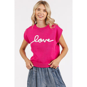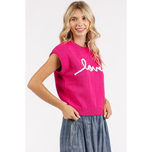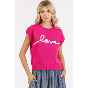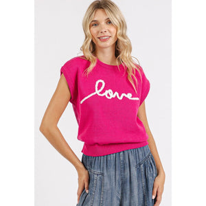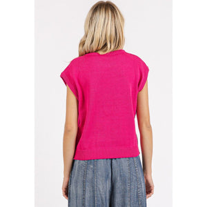 Mittoshop Contrast Letter Round Neck Cap Sleeve Knit Top