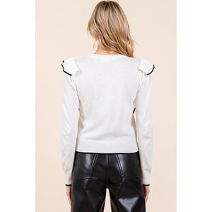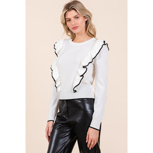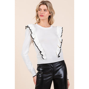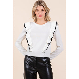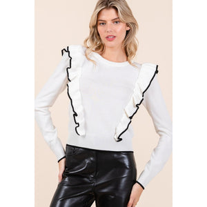 Mittoshop Contrast Trim Ruffled Round Neck Knit Top