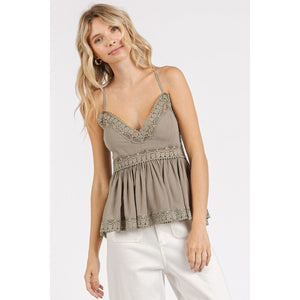 The Crisscross Back Lace Detail V-Neck Cami is a stylish and feminine top that offers a blend of elegance and sophistication. With a flattering V-neckline, delicate lace detailing, and a unique crisscross back design, this cami exudes a flirty and chic vibe. The lace accents add a touch of romantic charm to the top, while the crisscross back enhances its visual appeal and adds a trendy twist. Perfect for layering or wearing on its own, this cami is a versatile piece that can be dressed up for a night out or dressed down for a casual day look. Elevate your outfit with this beautiful and versatile cami that combines fashion-forward style with feminine details.