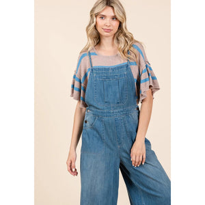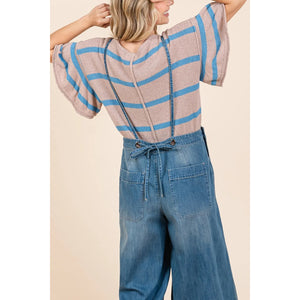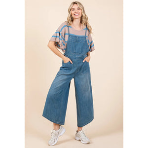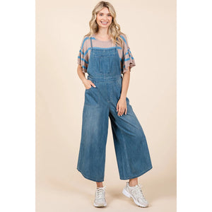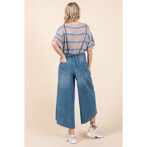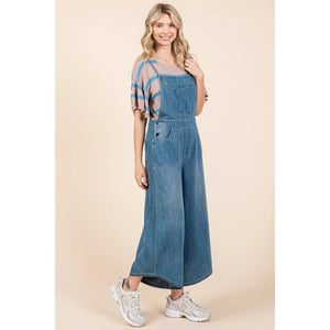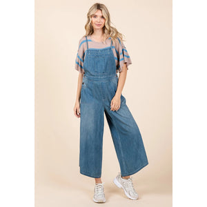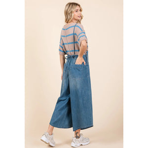 Mittoshop Denim Tie Back Sleeveless Wide Leg Overalls