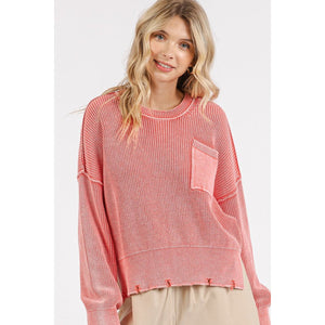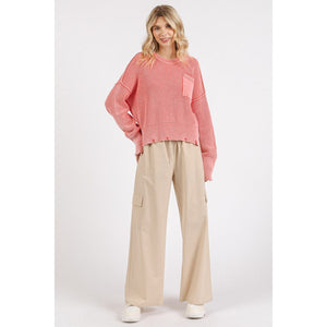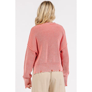 Mittoshop Distressed Hem Round Neck Dropped Shoulder Sweater