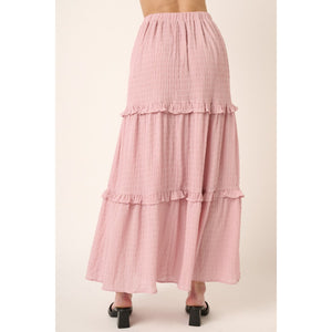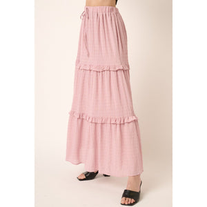 Introducing our stunning Drawstring High Waist Frill Skirt. This stylish skirt features a flattering high waist and beautiful frill detailing, adding a touch of elegance and femininity to any outfit. The drawstring allows for adjustable comfort and fit, making it perfect for all-day wear. Whether you're headed to a brunch date or a night out, this versatile skirt is sure to make a chic statement.