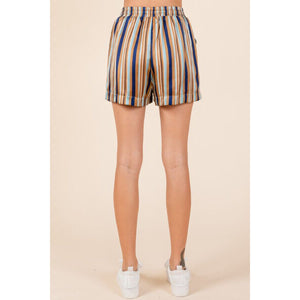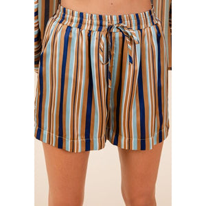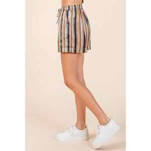 The Drawstring Striped Satin Shorts are a trendy and comfortable option for warm weather. The satin fabric adds a touch of elegance and sheen to the design. Featuring a drawstring waist, these shorts offer a customizable and secure fit. The striped pattern adds a fun and playful element to the style. Pair them with a simple tank top and sandals for a chic and laid-back summer look.