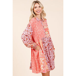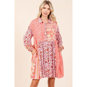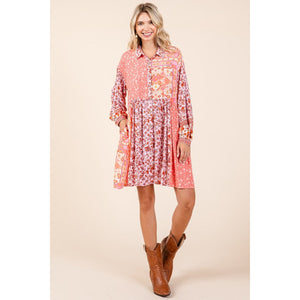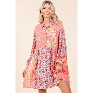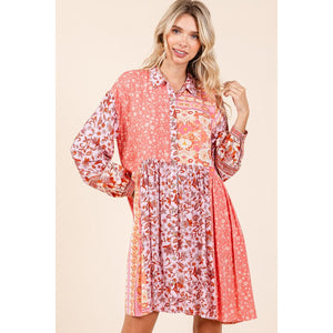 Mittoshop Floral Button Detail Long Sleeve Shirt Dress