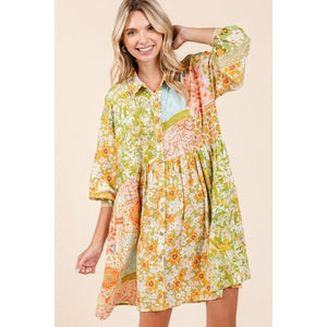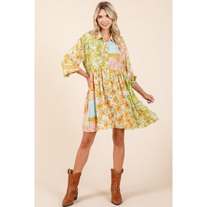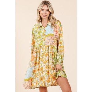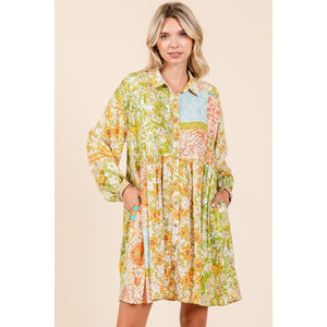 Mittoshop Floral Button Detail Long Sleeve Shirt Dress