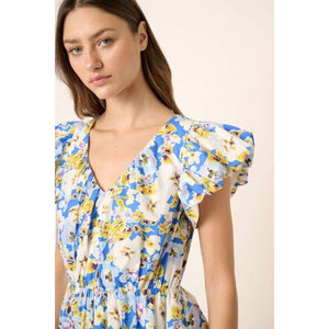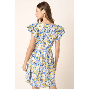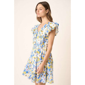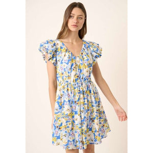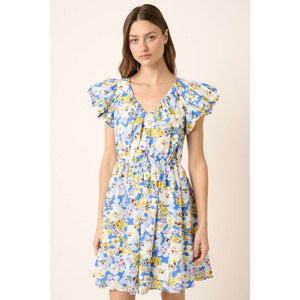 Mittoshop Floral V-Neck Cap Sleeve Mini Dress