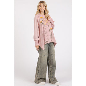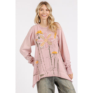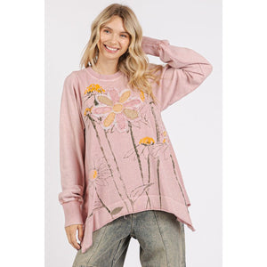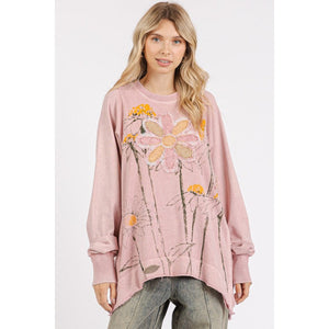 Mittoshop Flower Graphic Print and Patch Oversized Sweatshirt