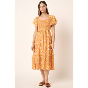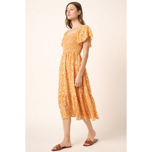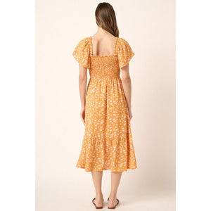 Mittoshop Flower Print Flutter Sleeve Smocked Midi Dress