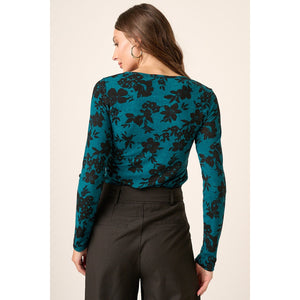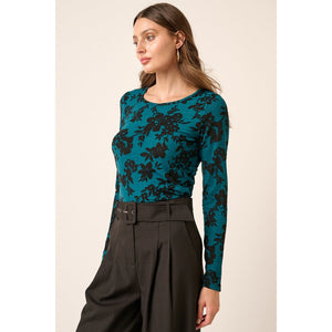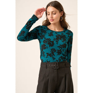 This charming top features a contrast flower print on soft knit fabric, adding a vibrant touch to your wardrobe. The round neck and long sleeves provide a classic silhouette, making it perfect for layering or wearing on its own. The straight hem ensures a polished finish, making this top a versatile choice for both casual outings and more dressed-up occasions. Pair it with jeans or skirts for a stylish, effortless look!