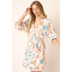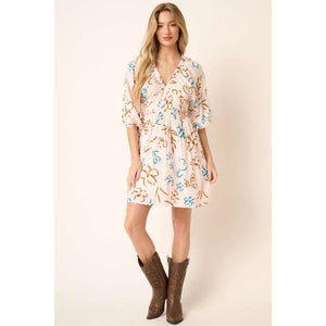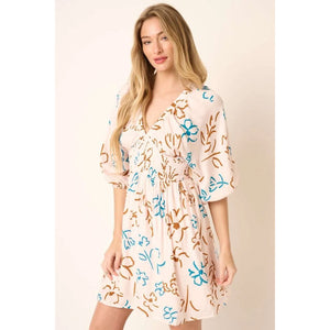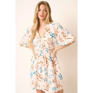Mittoshop Flower Print Mocked Waist Mini Dress
