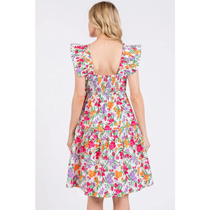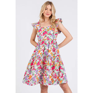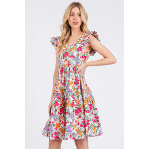 Mittoshop Flower Print Ruffle Shoulder A-line Mini Dress