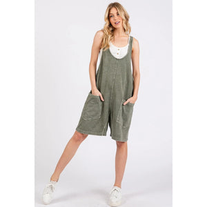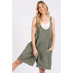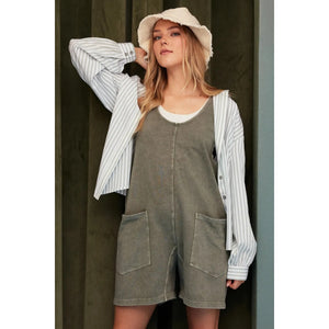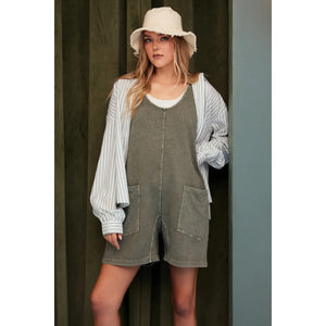 This romper features a low scoop neckline and is made from washed French terry fabric for a comfortable and stylish look. The low scoop neck adds a touch of casual flair to the design. Perfect for a relaxed and chic outfit, this romper is versatile and easy to wear. Elevate your style with this trendy low scoop neck tank washed French terry romper!