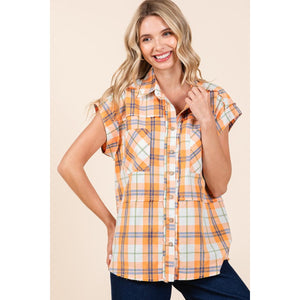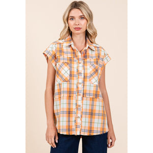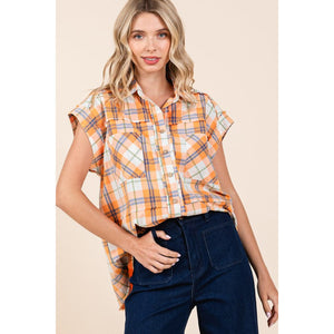 The Mineral Wash Plaid Button Down Shirt offers a unique twist on a classic wardrobe staple. Featuring a mineral wash finish, this shirt has a trendy and edgy look that sets it apart from traditional plaid shirts. The button-down design adds a touch of sophistication and versatility, allowing you to style it in various ways. The plaid print adds a timeless and versatile element to the shirt, making it perfect for both casual and more polished outfits. Pair it with jeans for a laid-back look or layer it over a dress for a chic ensemble. Elevate your style with the Mineral Wash Plaid Button Down Shirt as a modern and fashionable piece in your collection.