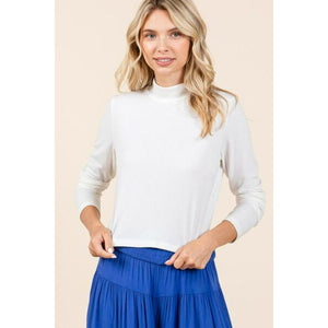 The Mock Neck Rib Knit Long Sleeve Crop Top is a trendy and versatile piece that adds a touch of sophistication to your wardrobe. With its mock neck design and ribbed knit texture, this top exudes a modern and chic look. The long sleeves provide coverage and warmth, making it perfect for layering during cooler seasons. The cropped silhouette adds a stylish and flattering touch, ideal for pairing with high-waisted bottoms. Whether dressed up with a skirt or dressed down with jeans, this crop top is a versatile and fashion-forward choice for various occasions. Elevate your outfit with the Mock Neck Rib Knit Long Sleeve Crop Top as a contemporary and stylish addition to your collection.