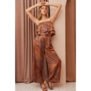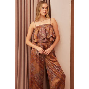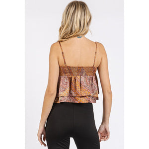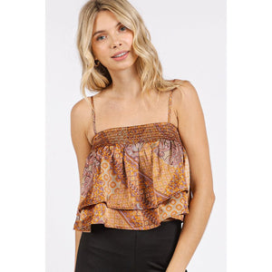 The Paisley Patchwork Print Satin Ruffle Crop Cami is a statement piece that exudes bohemian charm and femininity. Featuring a colorful paisley patchwork print, this cami top adds a vibrant and eclectic touch to any outfit. The satin fabric lends a luxurious and silky texture to the piece, creating a chic and elegant look. The ruffle detailing adds a playful and romantic flair, perfect for adding dimension to your ensemble. Pair this crop cami with high-waisted jeans or a skirt for a stylish and trendy outfit that's perfect for both casual and dressy occasions. Embrace a free-spirited and fashion-forward style with the Paisley Patchwork Print Satin Ruffle Crop Cami as a standout addition to your wardrobe.