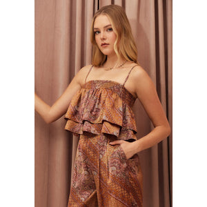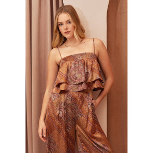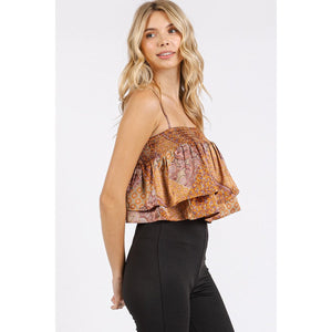 Mittoshop Paisley Patchwork Print Satin Ruffle Crop Cami