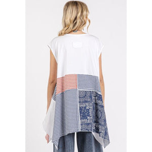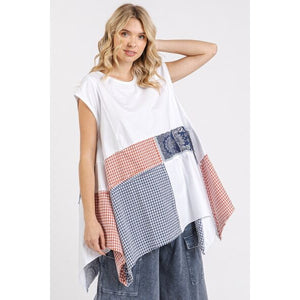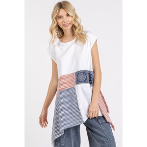 Mittoshop Patchwork Mineral Washed Round Neck Cap Sleeve Top