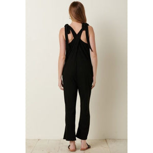 Mittoshop Rib Knit V-Neck Cross Back Jumpsuit