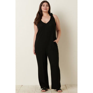 The Rib Knit V-Neck Cross Back Jumpsuit is a trendy and chic one-piece garment that effortlessly elevates your style. Made with rib knit fabric, it offers a comfortable and stretchy fit for all-day wear. The V-neckline flatters the neckline and adds a touch of femininity to the jumpsuit, while the cross back detail adds a unique and eye-catching element. Whether you dress it up with heels and statement jewelry for a night out or dress it down with sneakers for a casual daytime look, this jumpsuit is a versatile piece that can be easily dressed up or down for any occasion. Step out in style with the Rib Knit V-Neck Cross Back Jumpsuit.