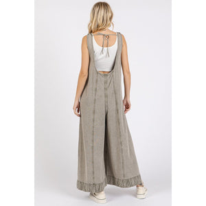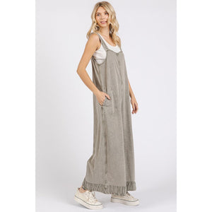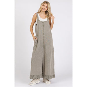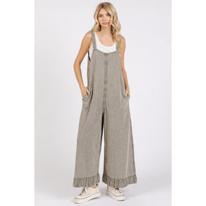 Mittoshop Ruffled Hem Wide Leg Overalls with Pockets