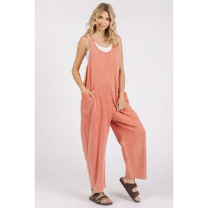 The Scoop Neck Wide Leg Overalls are a fashionable and versatile wardrobe piece. The scoop neck adds a touch of femininity to the overalls, while the wide leg design offers a flattering and comfortable silhouette. These overalls are perfect for creating a chic and effortless look, whether you pair them with a simple t-shirt for a casual outing or dress them up with a stylish blouse for a more dressed-up ensemble. The wide leg style adds a trendy flair to your outfit, making these overalls a versatile and stylish choice for any occasion.