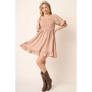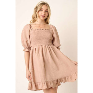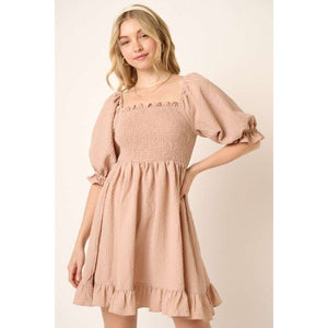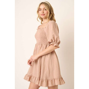 Mittoshop Smocked Ruffled Hem Half Sleeve Mini Dress