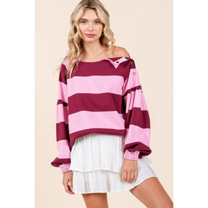 The Striped Snap Shoulder Long Sleeve T-Shirt is a stylish and versatile piece for your wardrobe. The chic striped pattern adds a touch of sophistication to the classic long sleeve silhouette. The unique snap shoulder detail provides a trendy and eye-catching accent, elevating the overall look of the shirt. Perfect for effortless style, this t-shirt is a great option for both casual and semi-casual occasions.