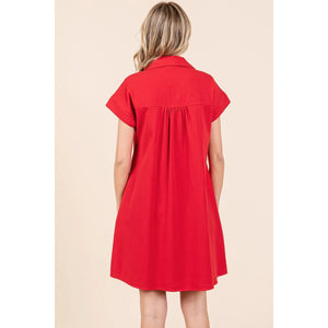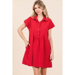 Mittoshop Twill Short Sleeve Collared Mini Dress