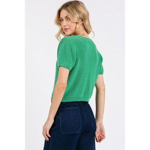Mittoshop V-Neck Short Sleeve Crop Sweater