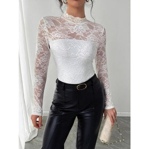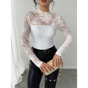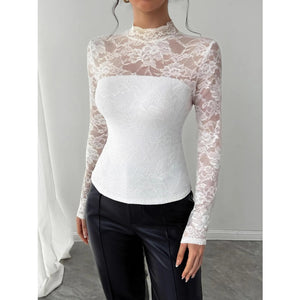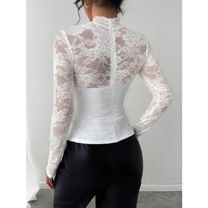 Mock Neck Long Sleeve Lace Top