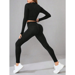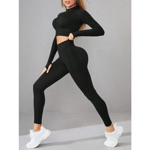 Mock Neck Long Sleeve Top and Leggings Active Set
