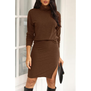 Mock Neck Long Sleeve Top and Slit Skirt Set