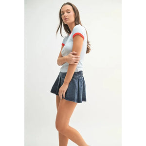 The Contrast Trim Fitted Baby Tee is a stylish and flattering option for a casual yet trendy look. Its contrast trim detailing adds a chic touch to the classic baby tee style. The fitted silhouette enhances your figure while providing a comfortable fit. Perfect for pairing with high-waisted jeans or a skirt, this tee is versatile and easy to style. Whether you're running errands or meeting friends for coffee, the Contrast Trim Fitted Baby Tee is a versatile piece that can be dressed up or down with ease. Stay effortlessly cool and on-trend with this must-have wardrobe staple.