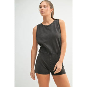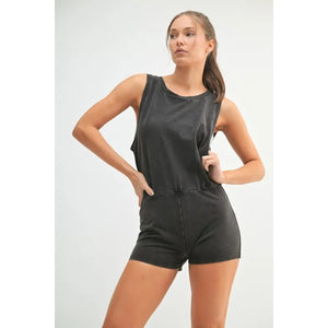 A mineral wash vintage romper is a stylish and trendy one-piece outfit that combines comfort with retro charm. The mineral wash gives the fabric a faded, worn-in look that adds to the vintage appeal of the romper. Rompers are convenient and versatile, offering an all-in-one solution for a complete outfit. The vintage style adds a touch of nostalgia and character to your look. This type of romper is perfect for casual outings, beach days, music festivals, or any relaxed summer event where you want to look effortlessly cool. Pair it with sandals or sneakers for a laid-back vibe, and accessorize with sunglasses and a hat to complete the retro-inspired look.