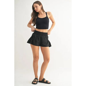 Smocked High Waist Shorts are stylish and feminine shorts featuring a smocked waistband that sits high on the waist. The smocked detailing provides a stretchy and comfortable fit while adding a touch of texture and visual interest. These shorts are perfect for creating a flattering silhouette and can be dressed up or down for a variety of occasions. Stay on-trend and comfortable with these chic high-waisted shorts.