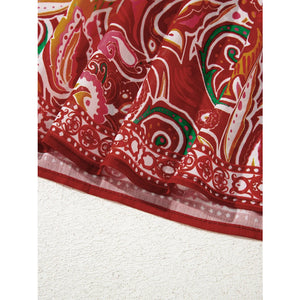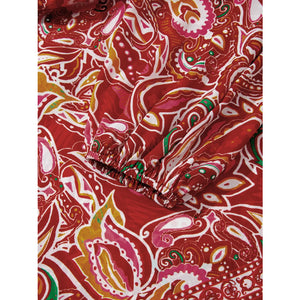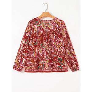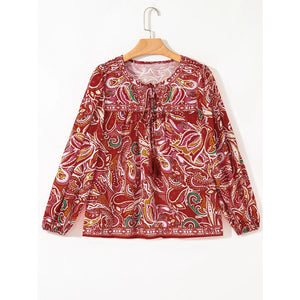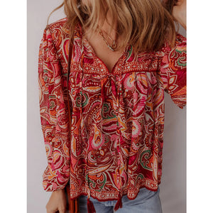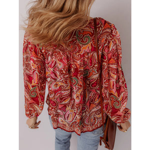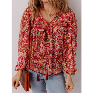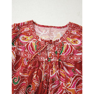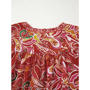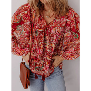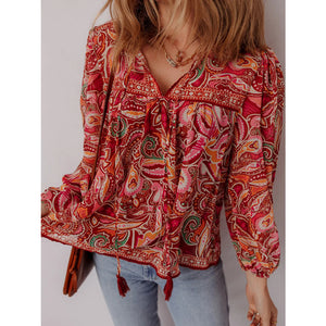 Multicolour Ethnic Paisley Print Tassel Tie Puff Sleeve Boho Blouse