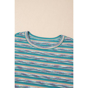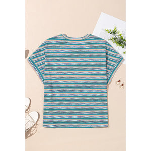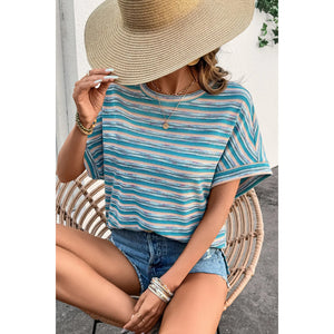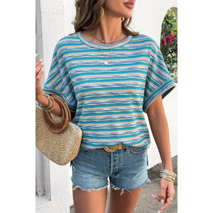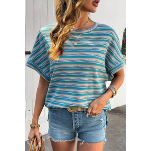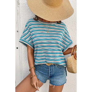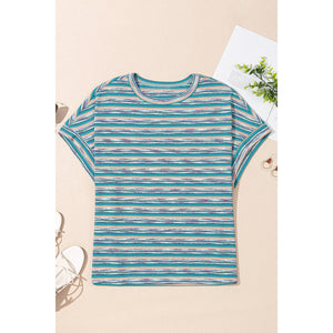 Multicolour Striped Wide Sleeve Loose T Shirt