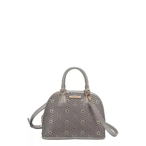 Sleek curves meet sharp craftsmanship in the Gracie dome satchel. Defined by its sculptural silhouette and signature laser-cut detailing, this bag is adorned with tonal rhinestones that add a subtle sparkle. Elegant top handles and a versatile crossbody strap make it the perfect companion for both polished daywear and chic evenings out.