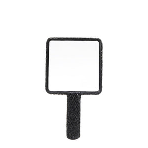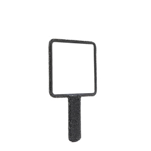 A rhinestone-encrusted plastic rectangle hand mirror is a fashionable and elegant accessory for your beauty needs. The sleek rectangle design adds a modern touch, while the rhinestones provide a glamorous and sophisticated look. This hand mirror is perfect for carrying in your purse for quick touch-ups on the go, and its stylish appearance makes it a beautiful addition to your vanity or dressing table.